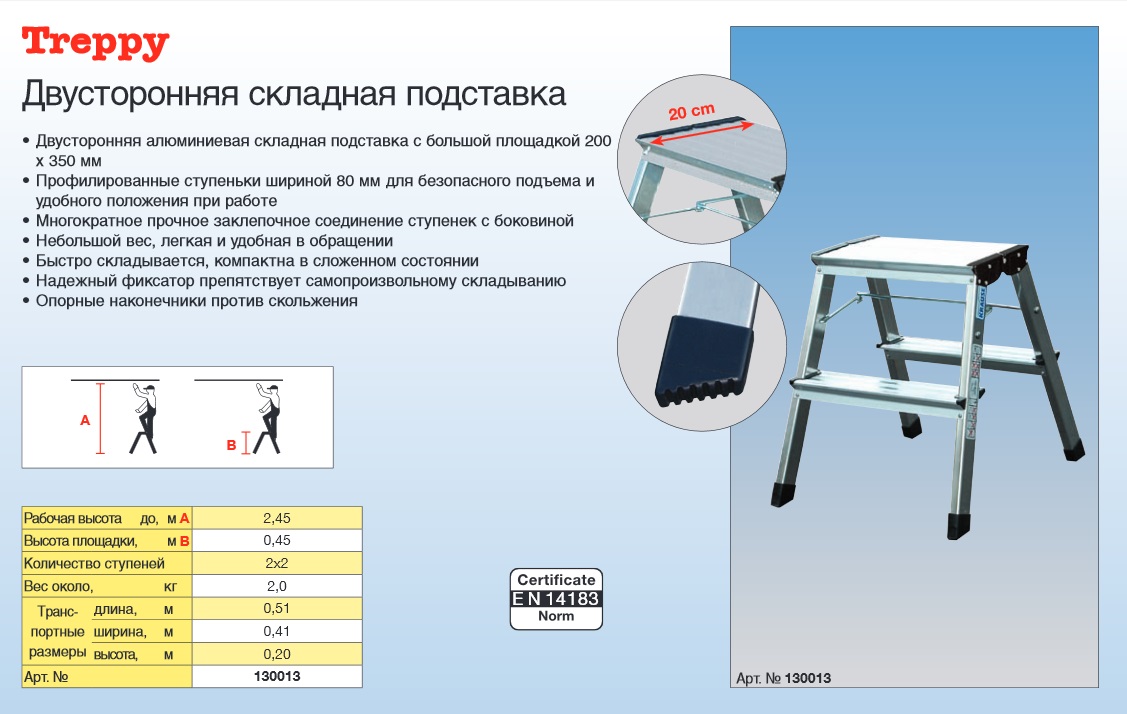 Купить Подставку 2 ступенчатую двустороннюю складную TREPPY KRAUSEв Екатеринбурге и Свердловской области можно в сети магазинов КРЕПЕЖ-СИТИ.