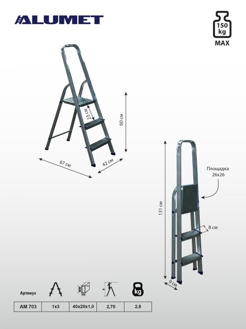 Стремянка алюминиевая серии АМ предназначена для проведения различных видов работ на высоте до 4 м как в быту, так и на производстве.