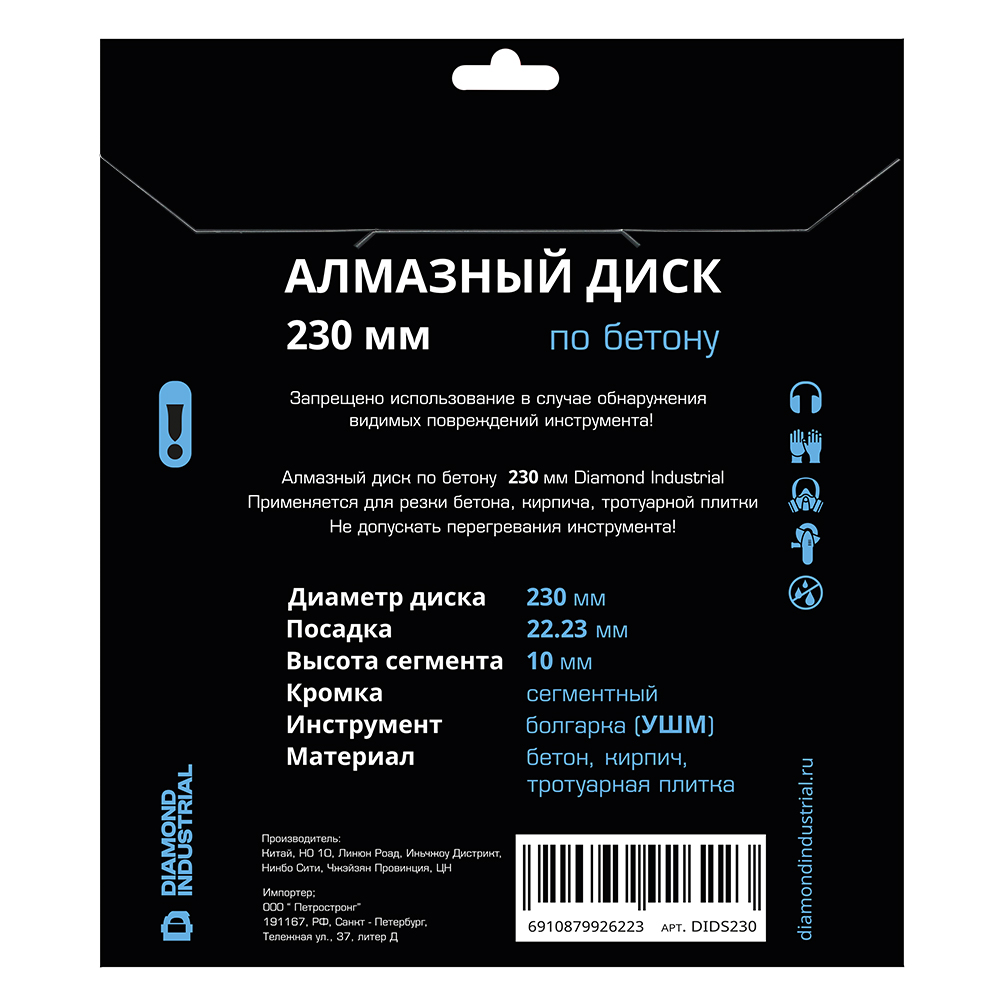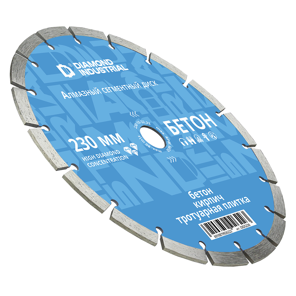 Диск алмазный сегментный DIDS230 Diamond Industrial предназначен для сухой резки бетона, кирпича, камня, а также других строительных материалов.
