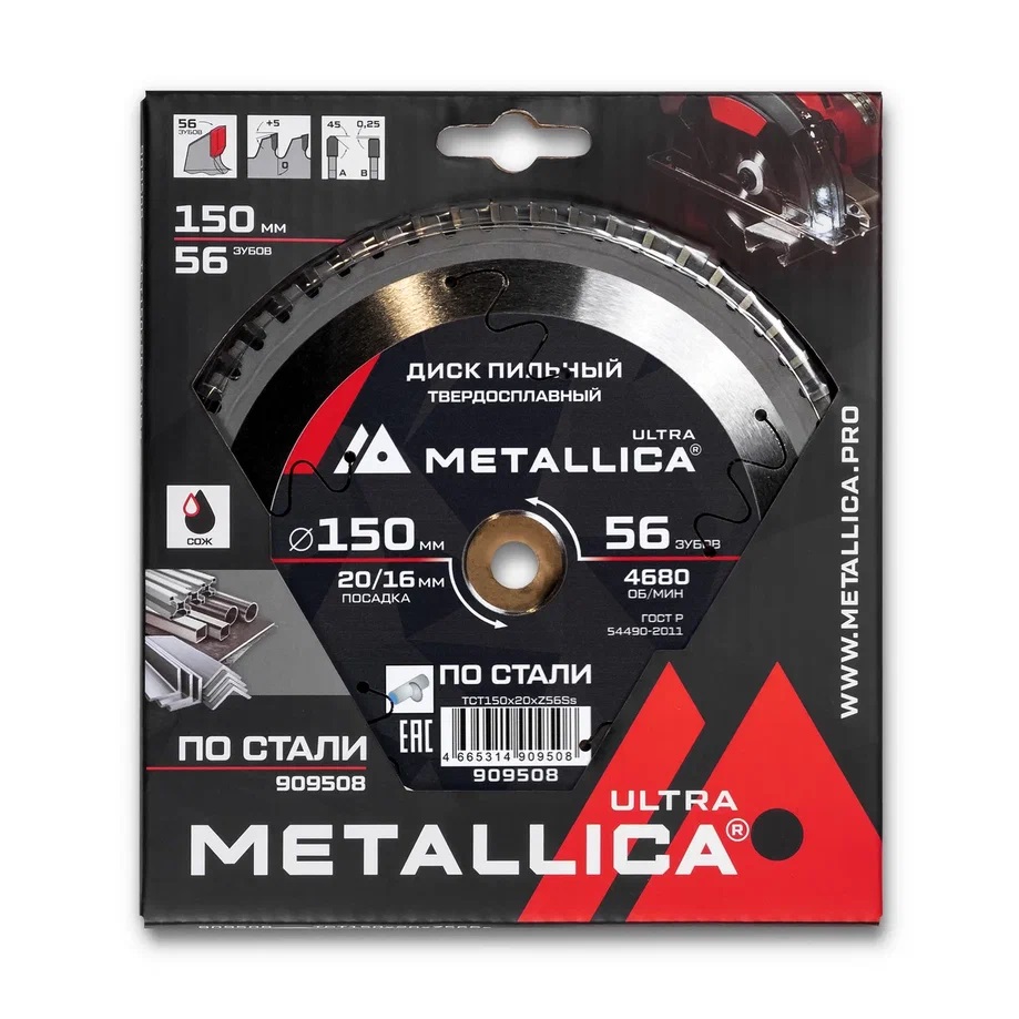 Диск пильный 150х2,0х20/16мм 56Z по стали, для чистого пиления, METALLICA Ultra