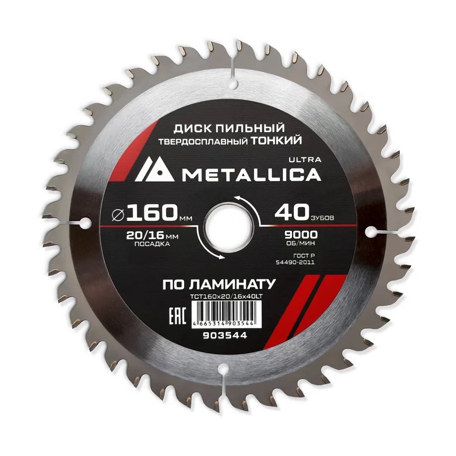 Диск пильный 160х1,8х20/16мм 40Z ТОНКИЙ по ламинату, для чистого пиления, METALLICA Ultra