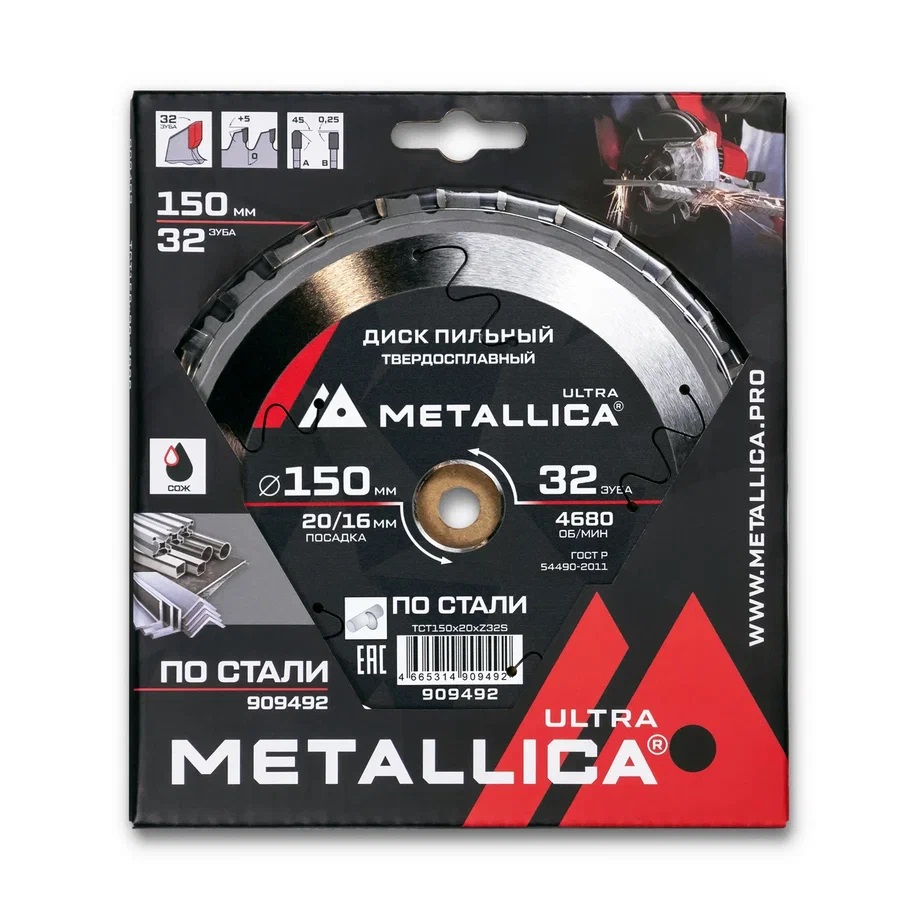 Диск пильный 150х2,0х20/16мм 32Z по стали, для чистого пиления, METALLICA Ultra