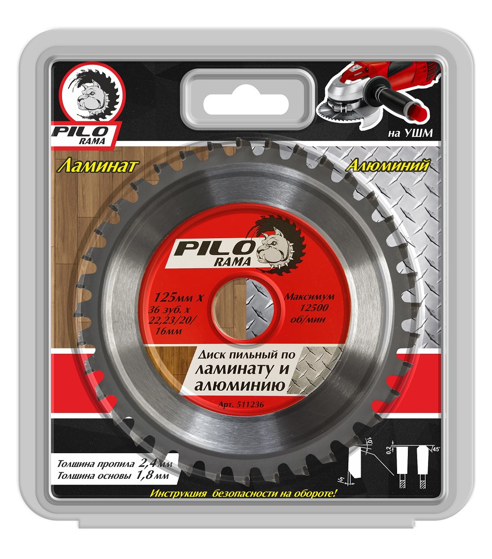 Диск пильный для УШМ по ламинату и алюминию 125х36Zх22,23/20/16мм, "Pilorama"