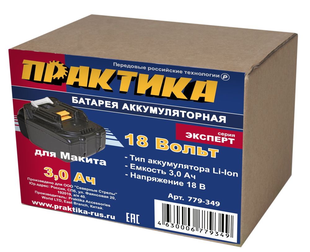 Аккумулятор ПРАКТИКА 18B, 3.0Aч, Li-Ion для MAKITA