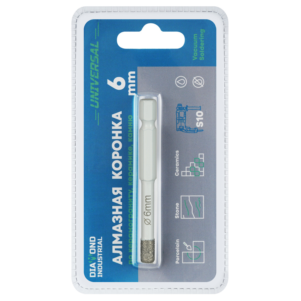 Коронка алмазная по керамике и керамограниту 6 мм, хвостовик HEX 1/4, Diamond Industrial