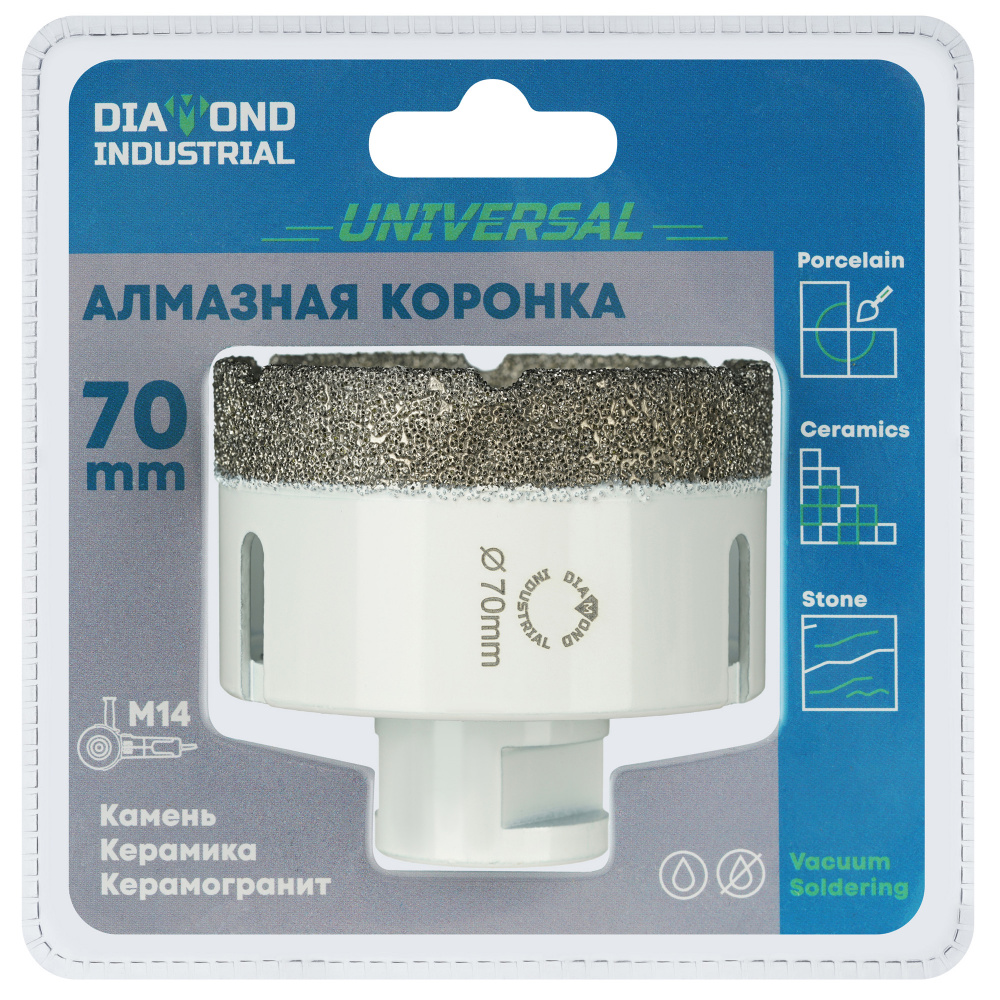 Коронка алмазная по керамике и керамограниту 70 мм/M14 для УШМ, Diamond Industrial