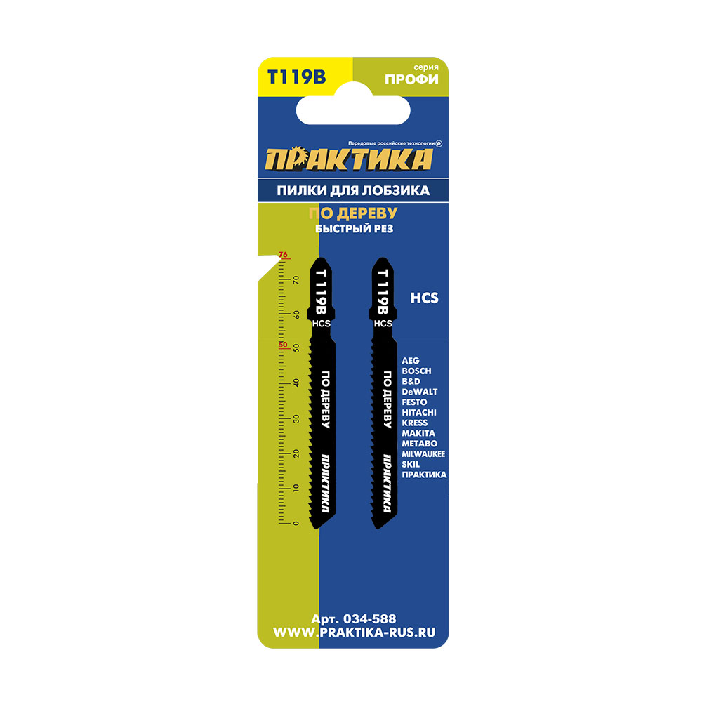 Пилки для лобзика T119B 100мм HCS (дерево,фанера,ДСП, пластик) грубый рез (2шт/упак) ПРАКТИКА