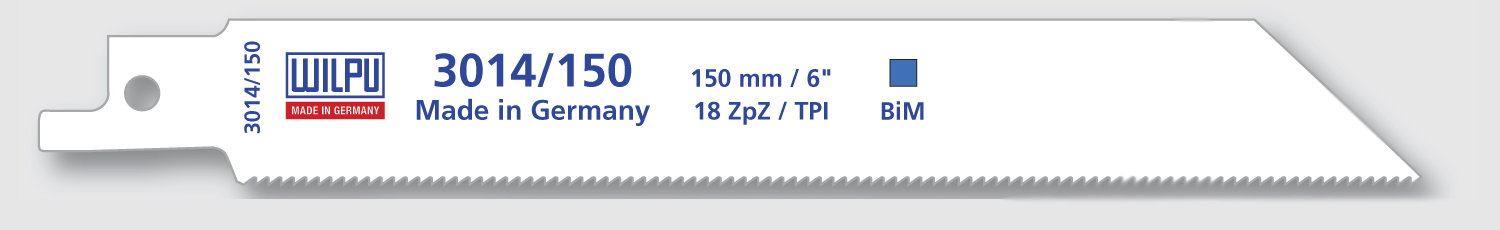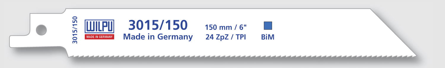 Пилки для сабельной пилы 3015/150 Bi-metall, рез 130мм, жесть, сталь от 1,2мм, мелкий зуб 24tpi, (5шт), WILPU /Германия/