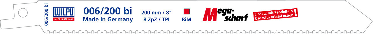 Пилки для сабельной пилы 3014/200 сталь, нерж., от 1,5 до 2,5мм, Bi-met (5шт), WILPU/Германия/