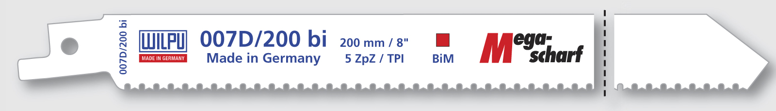 Пилки для сабельной пилы 007 D/200 bi, рез180 мм, М-зуб, для стали, цвет.металлов 2,5-10мм (5шт/упак.) WILPU /Германия/