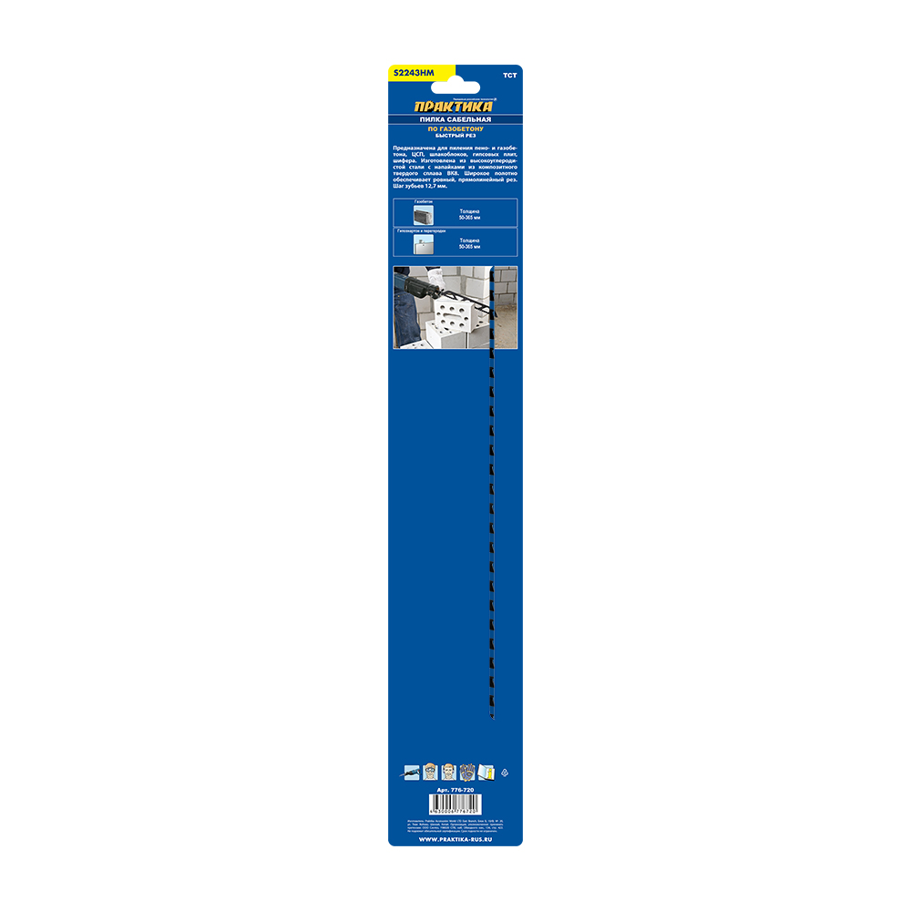 Пилки д/сабельной пилы S2243HM твердосплавные по газобетону, 455мм, шаг зубов 12,7мм (1шт./упак.) ПРАКТИКА