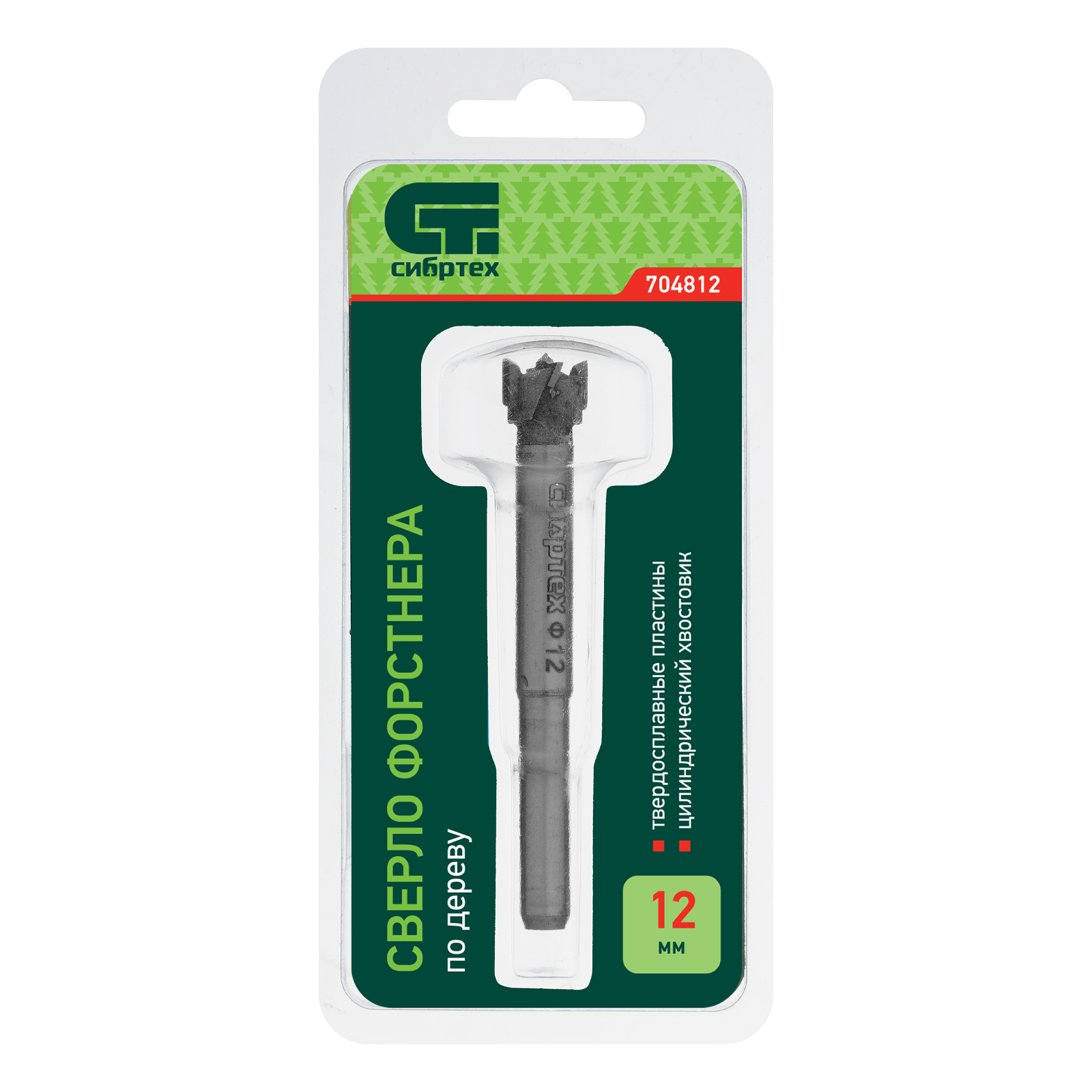Сверло Форстнера по дереву Сибртех с цилиндрическим хвостовиком, используется для получения глухих отверстий диаметром 12 мм в древесине, ДСП, ДВП и других материалах.