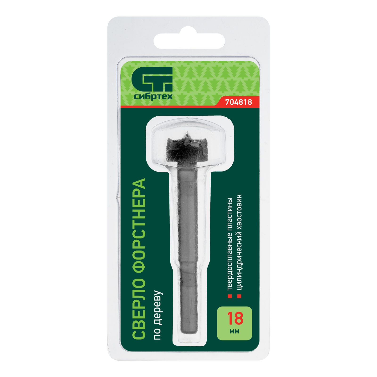 Сверло Форстнера по дереву Сибртех с цилиндрическим хвостовиком, используется для получения глухих отверстий диаметром 18 мм в древесине, ДСП, ДВП и других материалах.