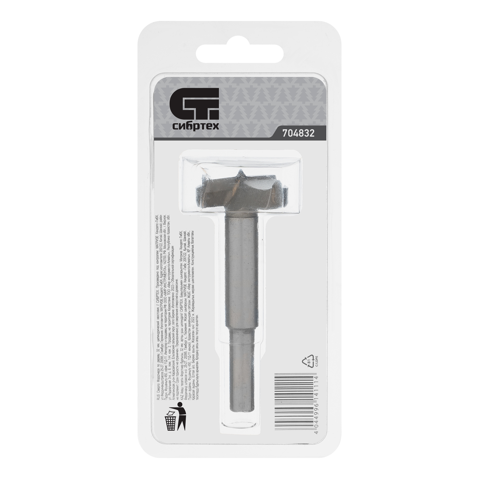 Сверло Форстнера по дереву Сибртех с цилиндрическим хвостовиком, используется для получения глухих отверстий диаметром 32 мм в древесине, ДСП, ДВП и других материалах.