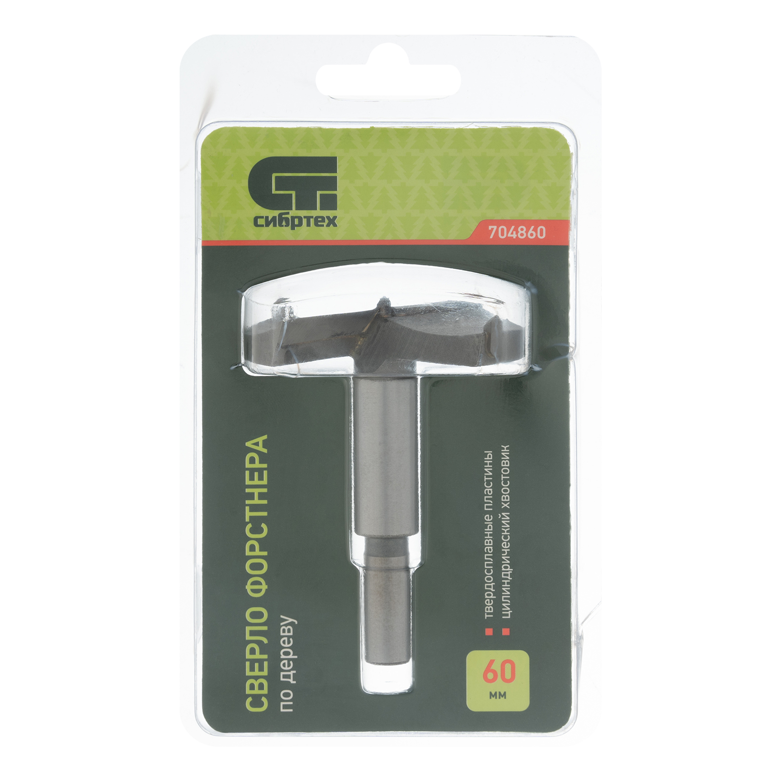 Сверло Форстнера по дереву Сибртех с цилиндрическим хвостовиком, используется для получения глухих отверстий диаметром 60 мм в древесине, ДСП, ДВП и других материалах.