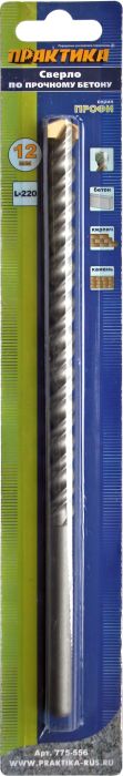 Сверло по бетону 12*200 ц/х ударное удлиненное, 4-х спиральное Профи, ПРАКТИКА