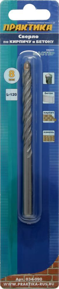 Сверло по бетону 8*120 ц/х ударное, 2-х спиральное Мастер, ПРАКТИКА