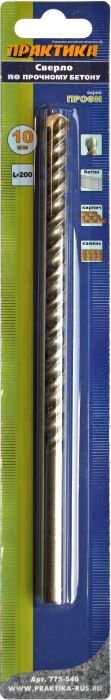 Сверло по бетону 10*200 ц/х ударное удлиненное, 4-х спиральное Профи, ПРАКТИКА