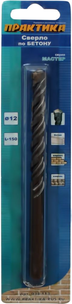 Сверло по бетону 12*150 ц/х ударное, 2-х спиральное Мастер, ПРАКТИКА