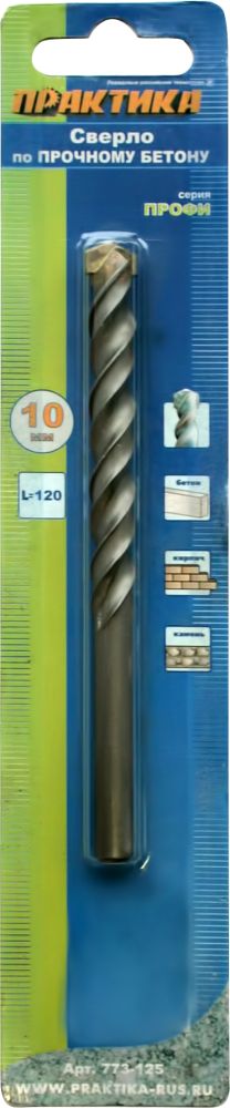 Сверло по бетону 10*120 ц/х ударное, 4-х спиральное Профи, ПРАКТИКА
