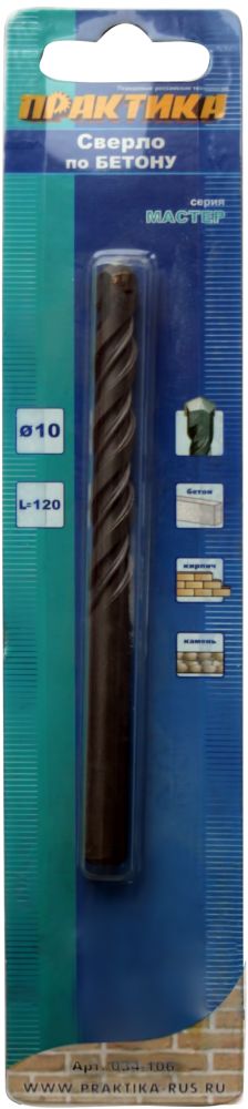 Сверло по бетону 10*120 ц/х ударное, 2-х спиральное Мастер, ПРАКТИКА