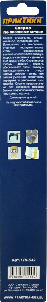 Купить Сверло по бетону ц/х ударное удлиненное 4-х спиральное Профи ПРАКТИКА в Екатеринбурге и Свердловской области можно в сети магазинов КРЕПЕЖ-СИТИ.