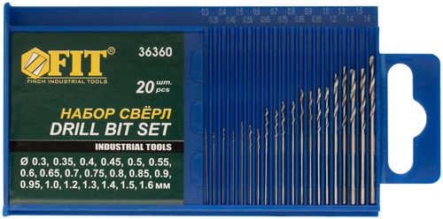 Набор сверл по металлу 20шт (0,3-1,6мм), HSS, FIT