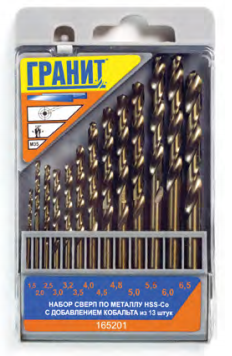 Набор сверл по металлу 13шт (1,5-6,5мм), HSS-Co, кобальт, ГРАНИТ