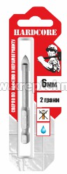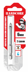 Сверло по стеклу и керамике 6,0*75 2 реж. лепестка, 6-гран. хвостовик, HARDCORE