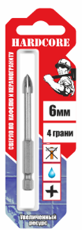 Сверло по стеклу и керамике 6,0*75 4 реж. лепестка, 6-гран. хвостовик, HARDCORE