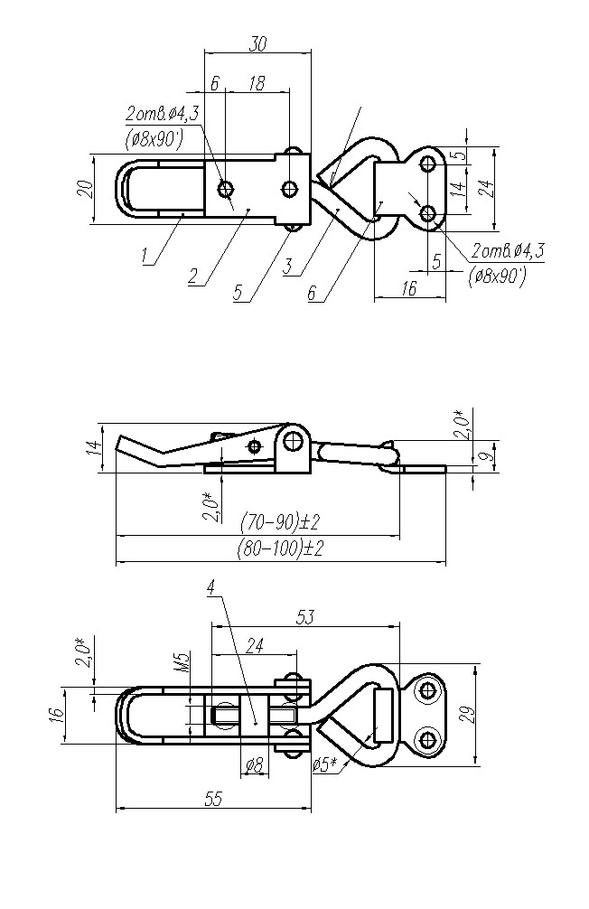 Замок регулируемый натяжной L=77-88 (Тип4, 701) нержавеющая сталь FW 601, пр-во Россия