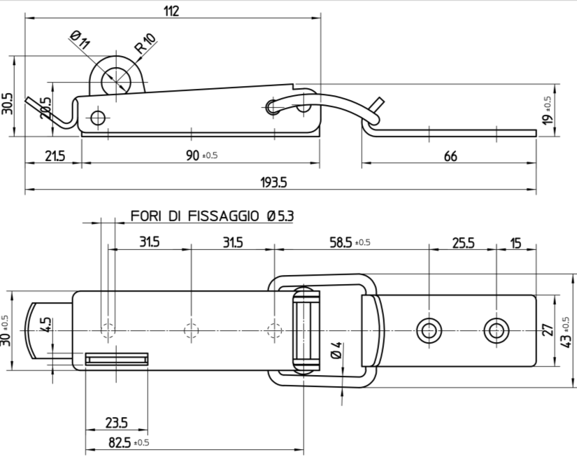 Замок-стяжка 193мм с проушиной, оцинк., пр-во ЕС