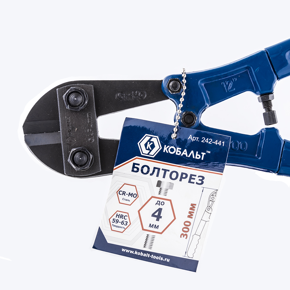 Болторез малый (арматурные ножницы) 300мм КОБАЛЬТ 242-441 предназначен для перекусывания болтов, шпилек, стальных прутков, арматуры, контейнерных пломб и прочих изделий из незакалённой стали и цветных металлов диаметром до 4 мм.