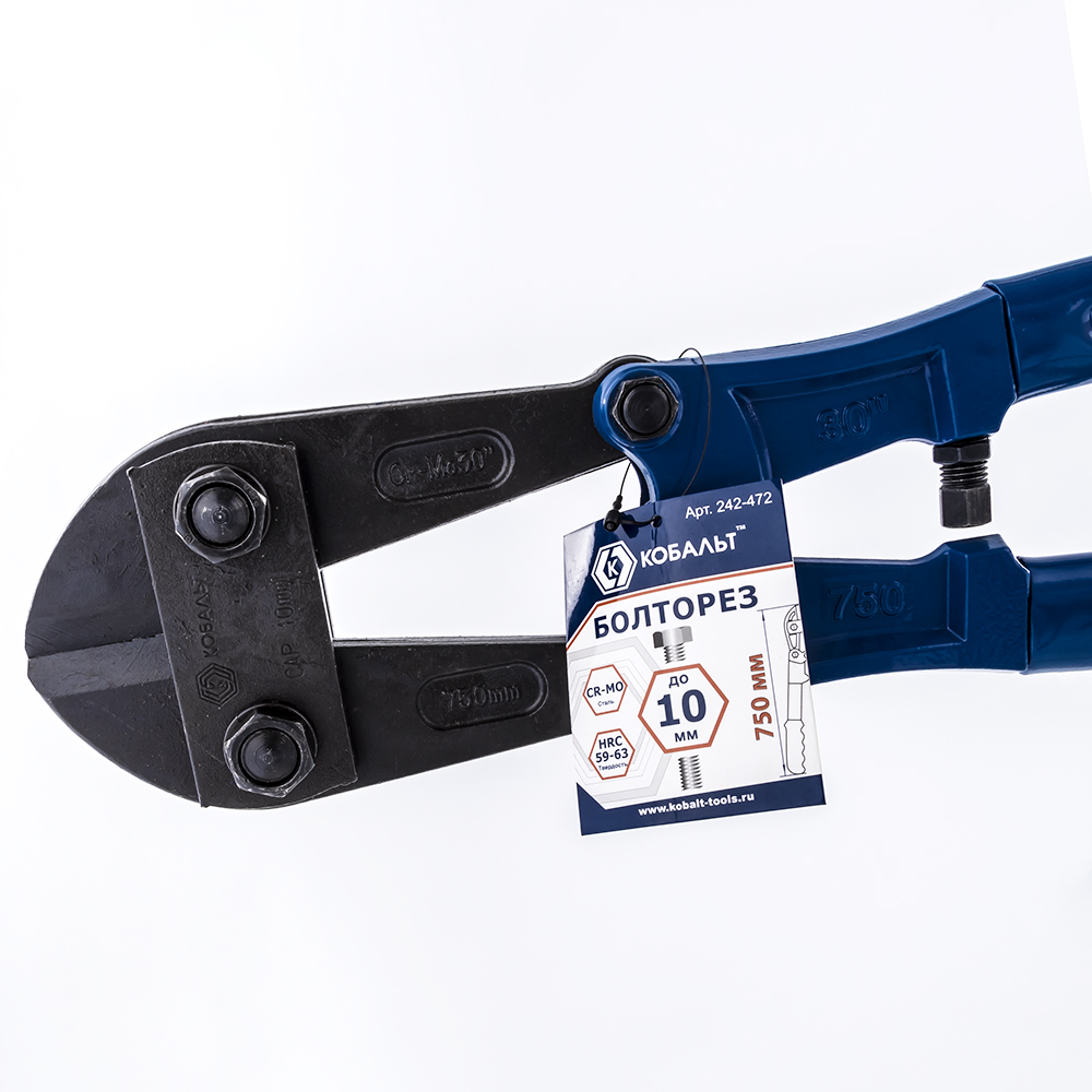 Болторез (арматурные ножницы) 750мм КОБАЛЬТ 242-472 предназначен для перекусывания болтов, шпилек, стальных прутков, арматуры, контейнерных пломб и прочих изделий из незакалённой стали и цветных металлов диаметром до 10 мм.