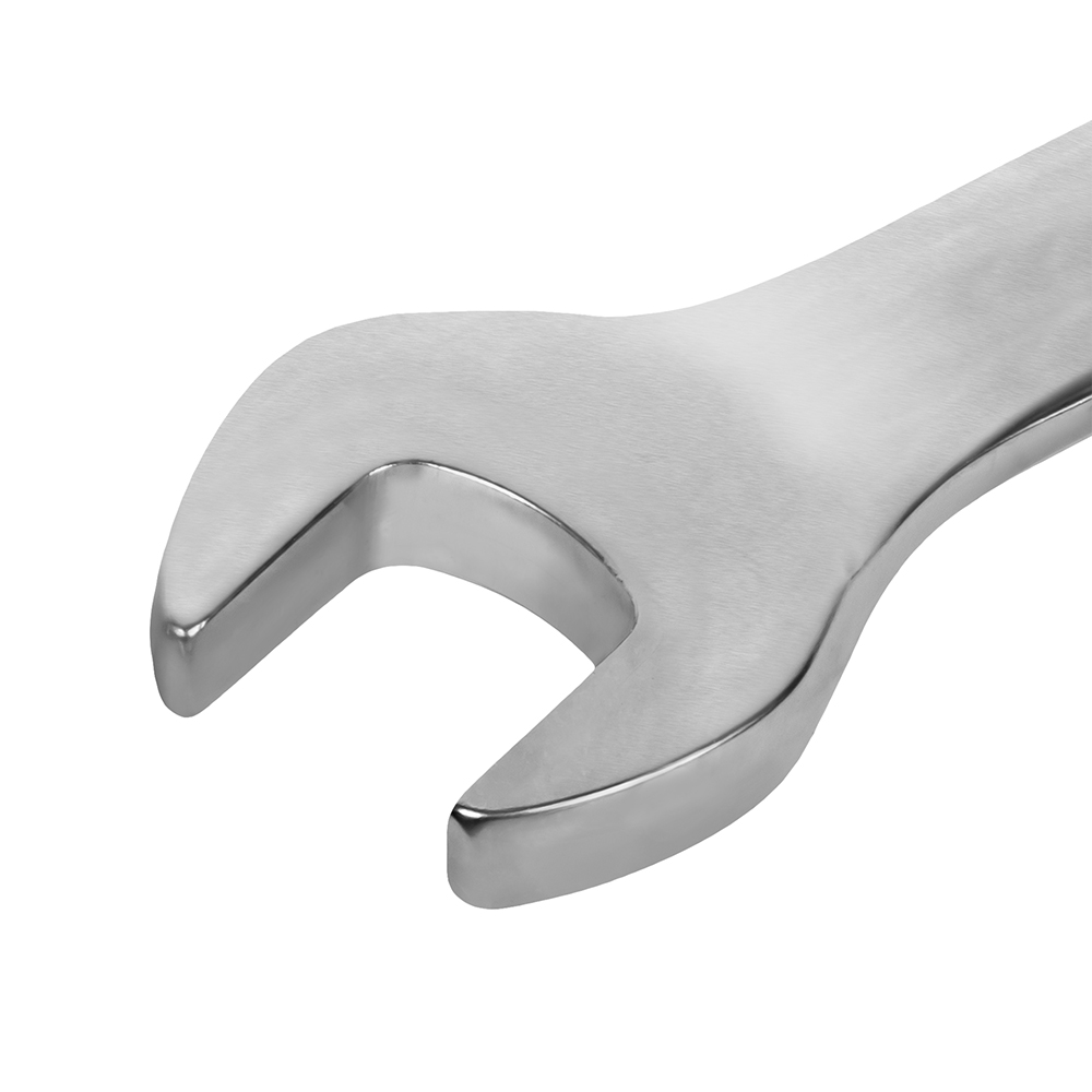- Изготовлен по стандарту DIN 3113 из хром-ванадиевой стали Cr50BV30, с закалкой рабочих поверхностей до 47-50 HRC. Защитное матовое хромовое покрытие ключа, нанесенное электролитическим способом, предохраняет от коррозии, улучшает внешний вид, при этом ключ не скользит в ладони в процессе работы. универсальный гаечный ключ, состоящий из двух рабочих профилей - рожкового и накидного.