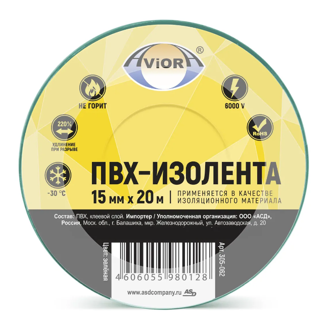 Купить Изоленту зеленую AVIORA в Екатеринбурге и Свердловской области можно в сети магазинов КРЕПЕЖ-СИТИ.