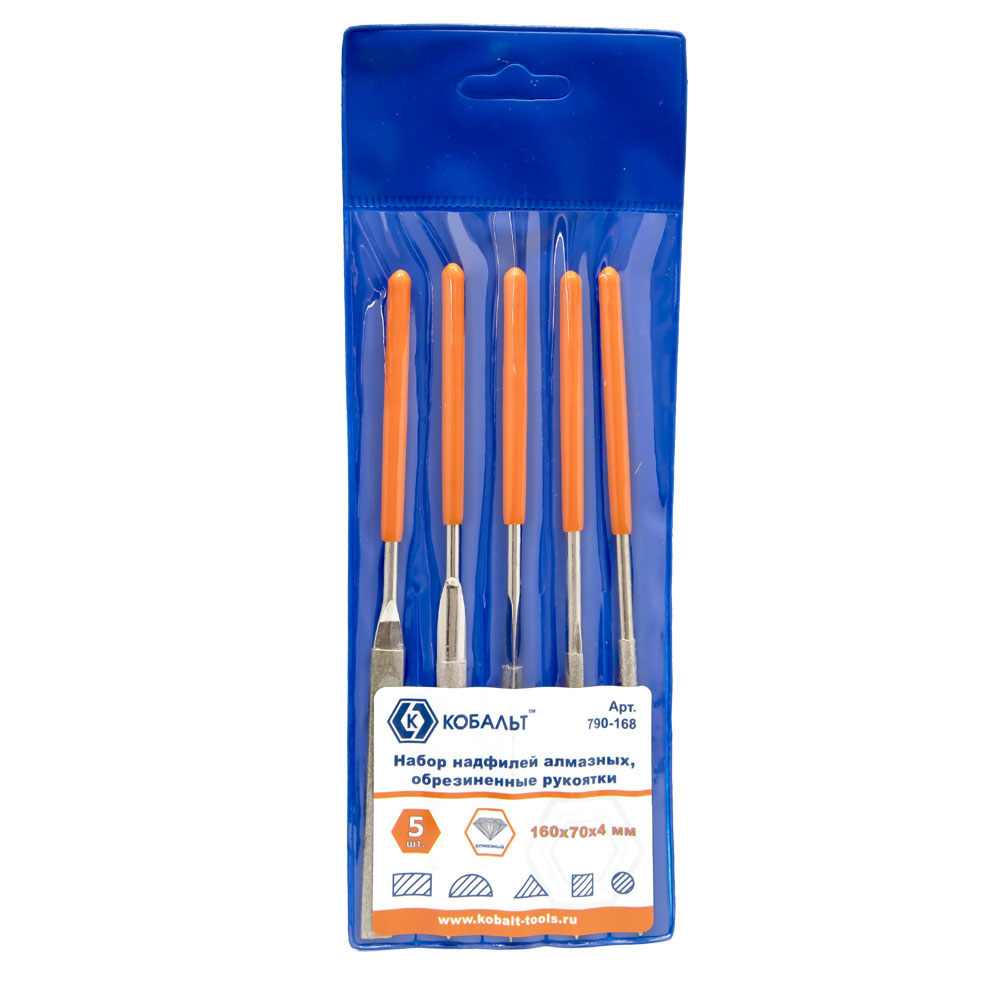 Надфили алмазные, набор 5 шт., 160х70х4мм, обрезиненная рукоятка, КОБАЛЬТ