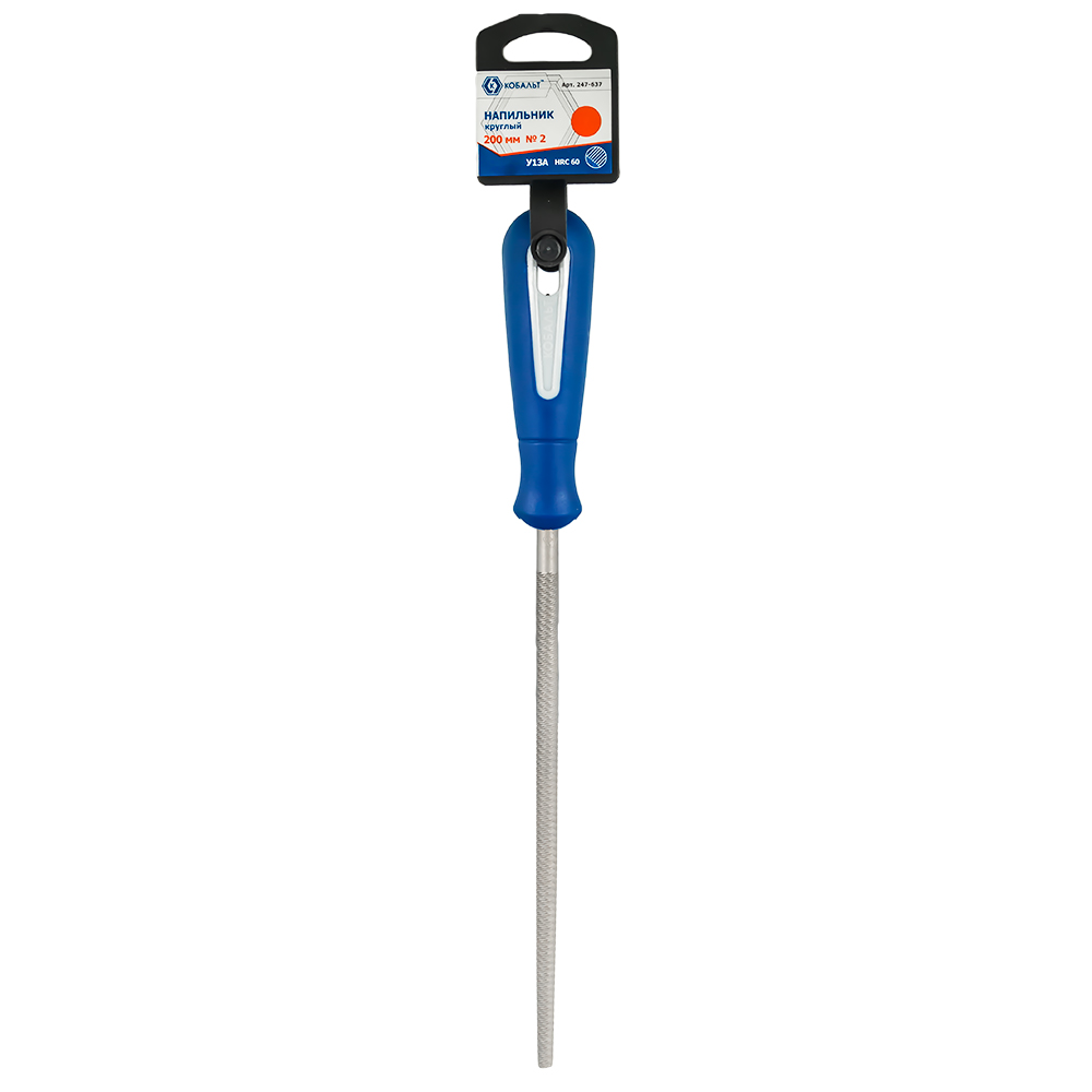 Напильник круглый 200мм №2 по металлу, двухкомпонентная ручка, КОБАЛЬТ