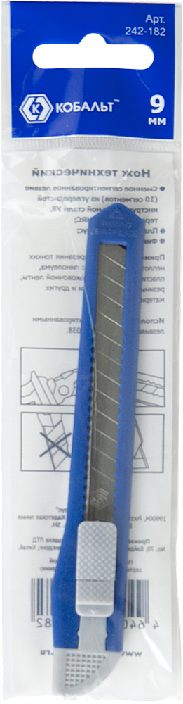 Нож узкий 9мм с отлам. лезв., пластиковый корпус, КОБАЛЬТ