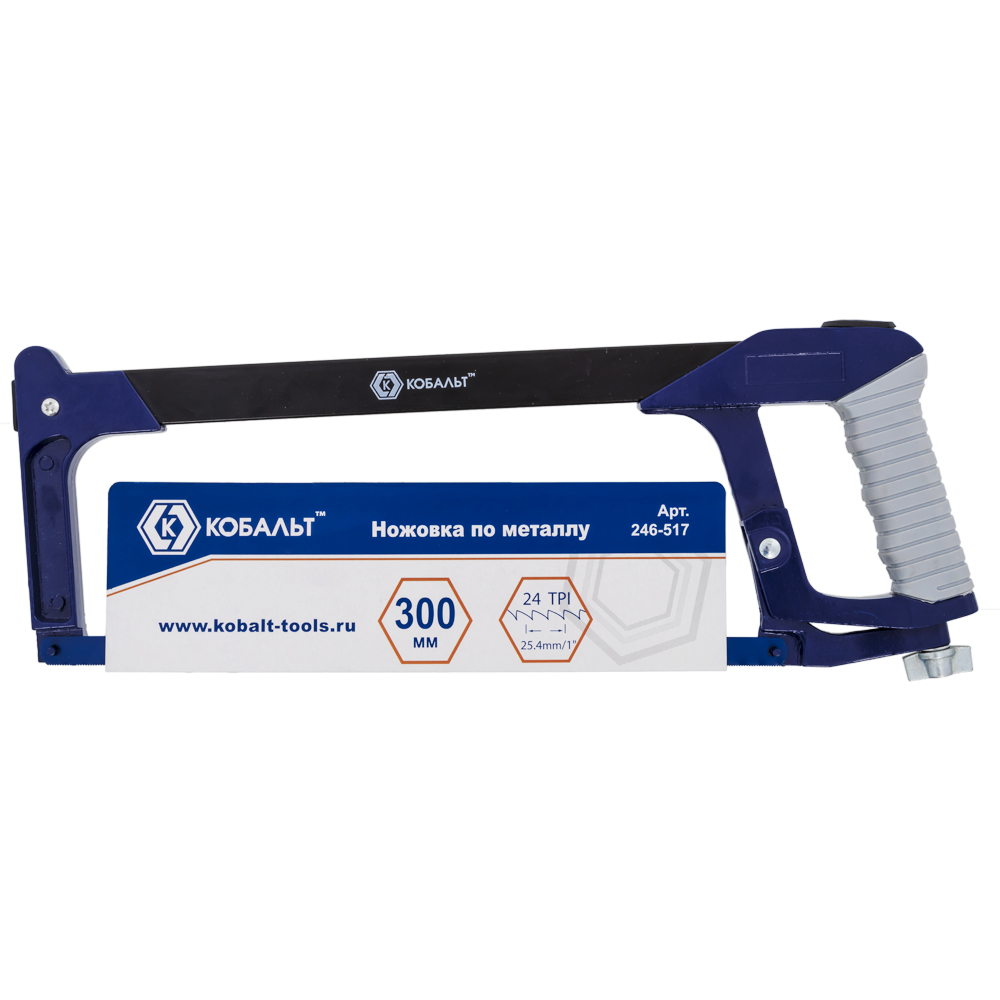 Ножовка по металлу 300мм КОБАЛЬТ 246-517 предназначена для прямолинейного пиления изделий из конструкционной стали, мягких цветных металлов, фанеры, OSB, пластика, плитки при установке соответствующего полотна.