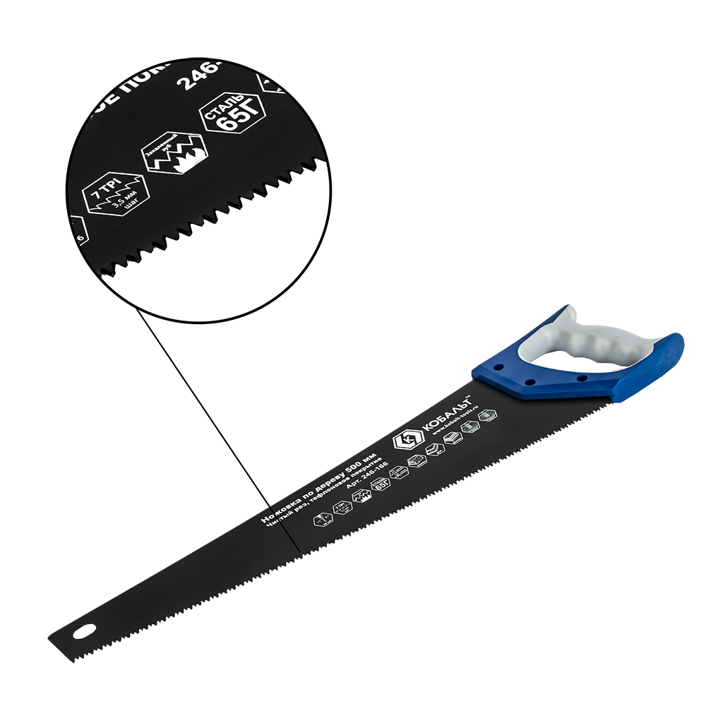Ножовка по дереву 500мм, шаг 3,5мм/7, тефлоновое покрытие, закаленный зуб, 3D заточка, 2-х компонентная ручка, КОБАЛЬТ