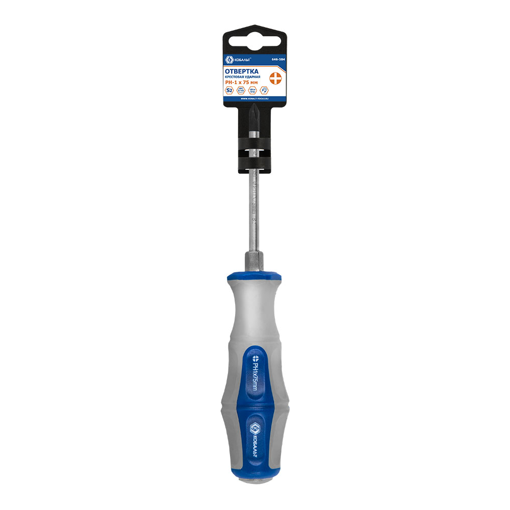 Отвертка ударная PH1*75мм крестовая, КОБАЛЬТ