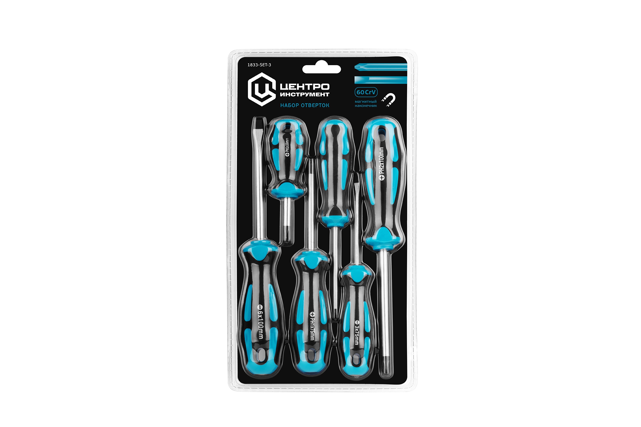Набор отверток 6 предметов (Ph1*75,Ph2*100,Ph2*150, шлиц 3.2*75, 5*100,6*150) Центроинструмент