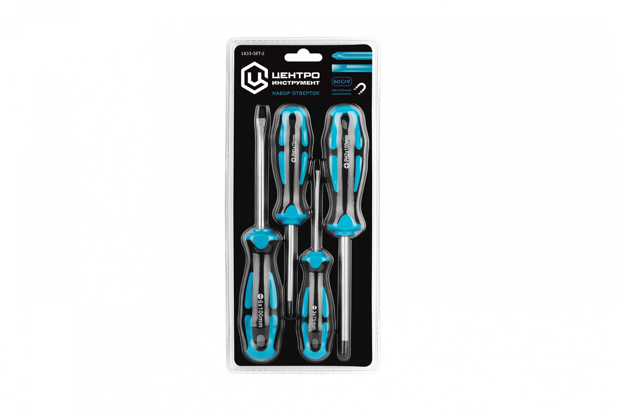Набор отверток 4 предмета (PH1 x75мм.PH2 x100мм,шлиц 3 x75мм,6 x100мм) Центроинструмент