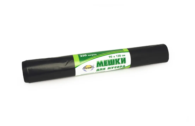Мешок для мусора ПВД черный 50 мкм 250л, 90х130см (1рул/10шт)