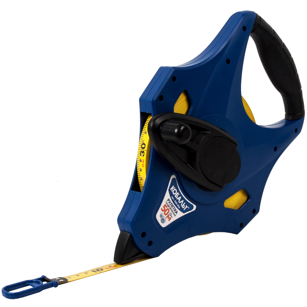 Рулетка 50м*15мм фиберглас, открытый корпус, ускоренная перемотка, КОБАЛЬТ