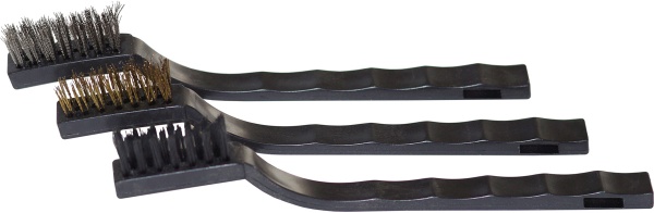 Набор щеток-мини 3шт. (нейлон, латунь, нерж. сталь ) с пластмас. ручкой