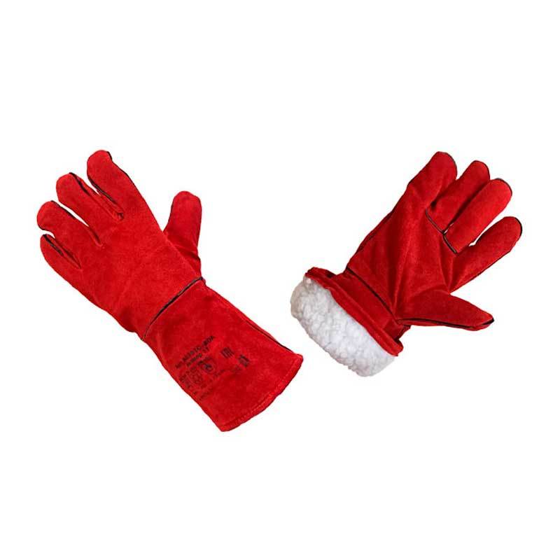 Краги сварщика из натуральной кожи (спилк.) МЕТАЛЛУРГ-ТРЕК утепленные, искусственный мех, красные
