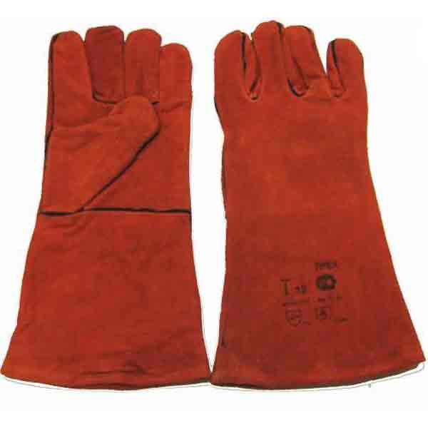 Краги сварщика из натуральной кожи (спилк) Т12 Трек с подкладкой из хлопковой ткани и флиса, красные