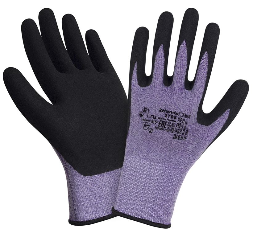 Перчатки нейлон/лайкра с нитриловым покрытием 2Hands, сиренево-черные, р-р 8,5